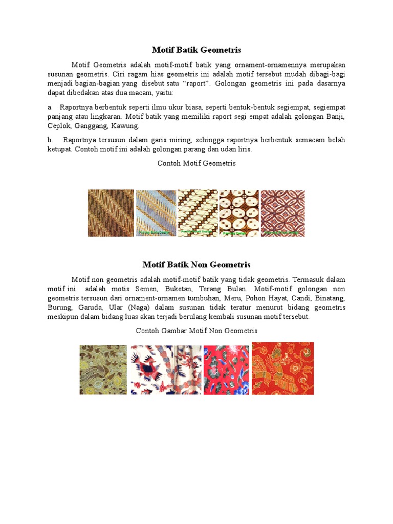 Penggolongan Motif Batik Motif Geometris Non Geometris Bahankain Com